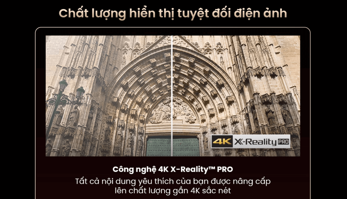 Công nghệ 4K X-Reality PRO là bộ xử lý hình ảnh thông minh, có khả năng nâng cấp mọi nội dung xem lên gần độ phân giải 4K sắc nét. Bằng cách phân tích và tinh chỉnh từng điểm ảnh, công nghệ này tái tạo chi tiết ẩn và làm sắc nét đường viền với độ chính xác đáng kinh ngạc, mang đến hình ảnh rõ ràng và sống động vượt trội, bất kể nguồn phát ban đầu.