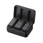 Sản phẩm bao gồm một hộp sạc nhỏ để giúp bạn tác nghiệp liên tục mà không lo hết pin. Bộ chuyển tiếp-micro có thể hoạt động liên tục xấp xỉ 6 giờ sau một lần sạc đầy.