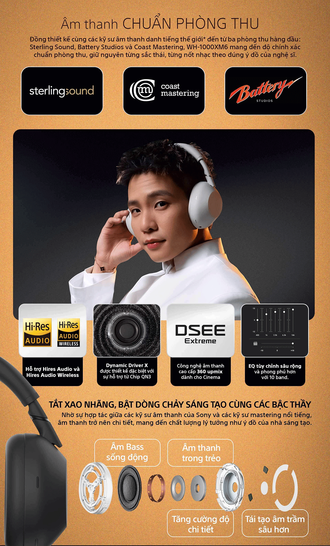 - Thưởng thức High-Resolution Audio có dây và không dây