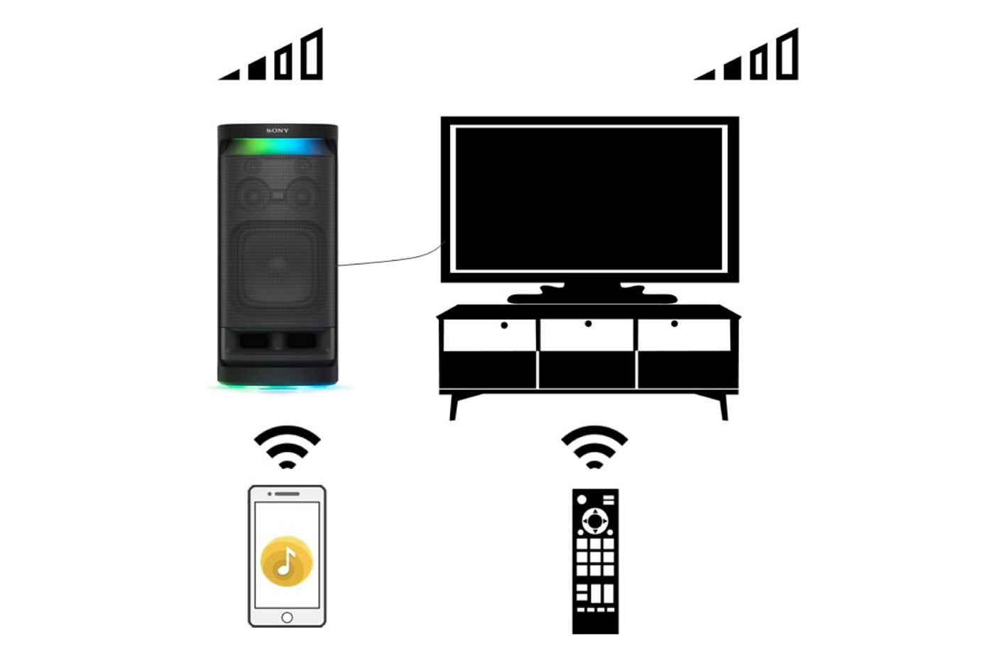 Với ứng dụng Sony | Music Center, bạn hoàn toàn có thể điều khiển cài đặt nhạc và âm thanh ngay từ điện thoại của mình. Ngoài ra, ứng dụng Fiestable giúp bạn kiểm soát màu sắc ánh sáng cũng như kích hoạt chế độ DJ và KARAOKE. Thực hiện các thay đổi chỉ bằng động tác vẫy cổ tay nhờ tính năng điều khiển chuyển động trực quan.